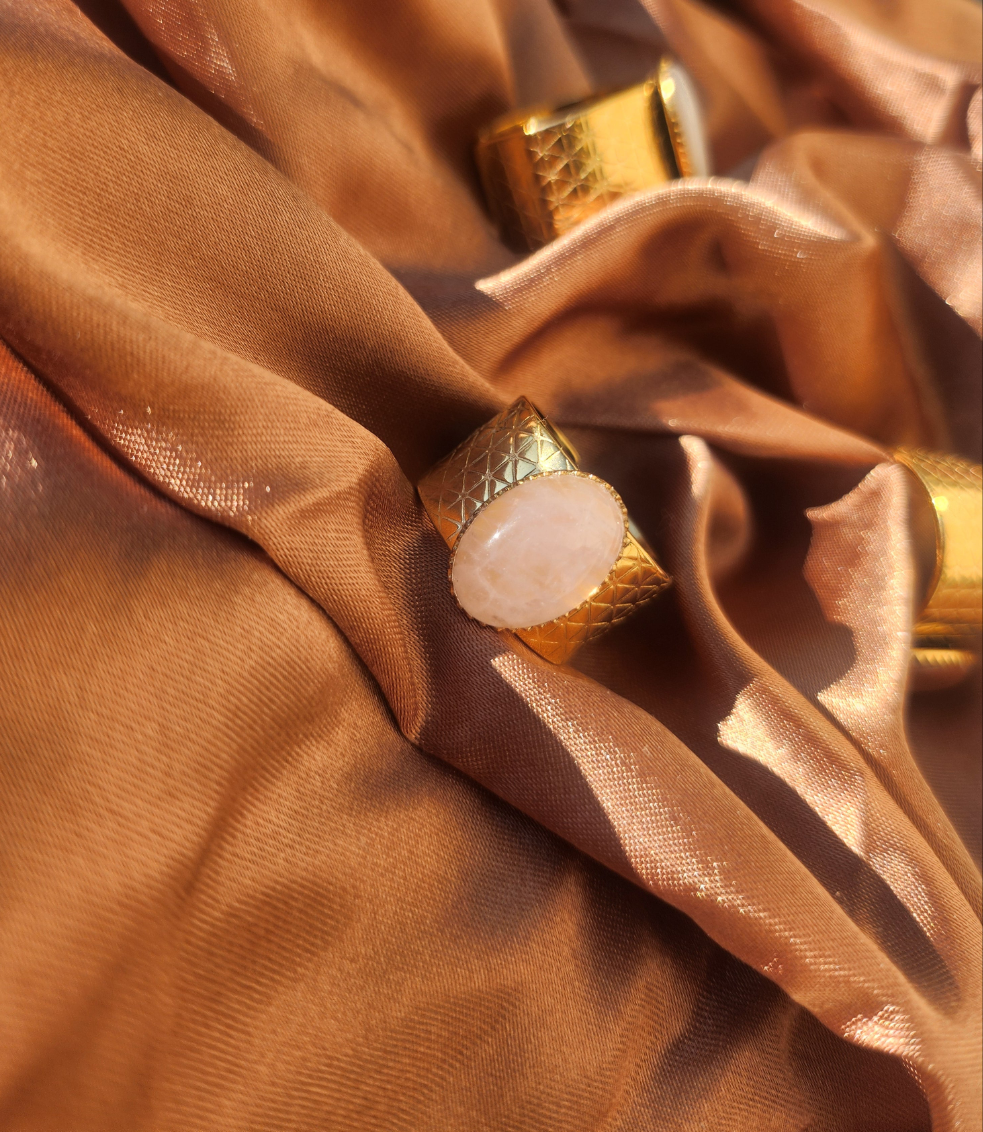Soléa 🌞💍, une collection inspirée par la lumière du soleil ! Ces bagues en acier inoxydable, ajustables pour un confort parfait, sont ornées de 3 pierres aux formes variées qui capturent chaque reflet avec élégance 💎✨.